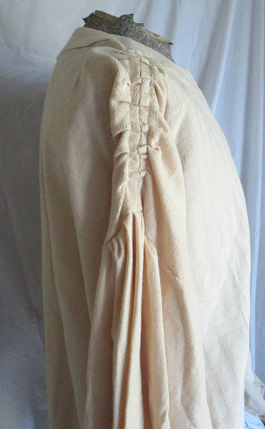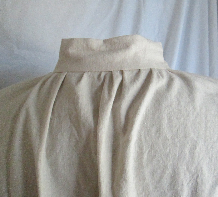 These shirts are linen blends, linen/cotton or linen/rayon. One style is more Celtic with long, dropped sleeves, gathered shoulders, and an open slit neckline with decorative facing. The other style is very generic with optional ties at the neck, simple gathered back and sleeve caps, and open cuffs. Choose the look that best fits! Each shirt is one of a kind - when they're gone, they're gone forever!