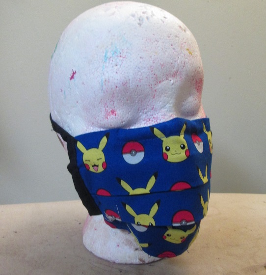 NON-MEDICAL fabric face masks. One size fits most adults and children 10 years and above. Measures 7.5 inches wide by 4.25 inches tall (when pleats are flat - expands up to 7 inches) with top ties 16 inches long and bottom ties 13 inches.