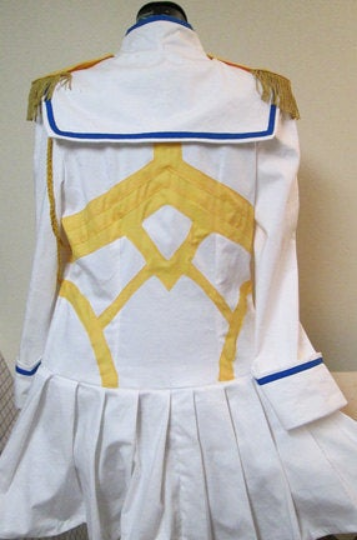 Created as a display piece in 2016, this cosplay costume has never been worn and is available for the right fan. The entire dress is 100% cotton, washable and breathable, with sturdy appliqued details front and back. Opaque white is a cotton sateen for a slight sheen and smooth texure, details are basic Kona colors. Size is petite, with a 36" bust and 32" waist; additional measurements can be provided upon request.